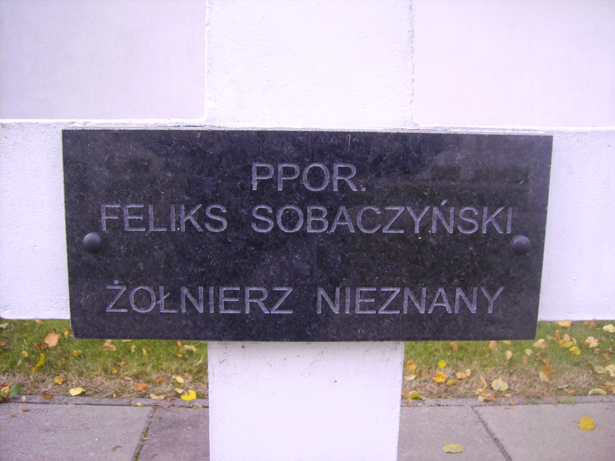 Feliks Sobaczyński upamiętniony na imiennej tablicy epitafijnej na mogile zbiorowej w obrębie kwatery wojennej żołnierzy Wojska Polskiego na cm. parafii rzymskokatolickiej pw. św. Jakuba Apostoła w Zdunach. Stan z dn. 27.09.2012 r. (fot. Błażej Kucharski).