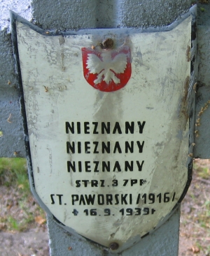 Ludwik Mączyński, upamiętniony na imiennej tablicy epitafijnej na kwaterze wojennej na cmentarzu rzymskokatolickim w Rybnie. Stan z 2005r.Paweł Nowik, upamiętniony na imiennej tablicy epitafijnej na kwaterze wojennej na cmentarzu rzymskokatolickim w Rybnie. Stan z 2005r.Lucjan Osimowicz upamiętniony (jako Lucjan Ozimowski) na imiennej tabliczce epitafijnej na jednej z mogił zbiorowych kwatery wojennej na cmentarzu parafialnym w Rybnie. Stan z dn. 2 czerwca 2005 r. (fot. Marcin Prengowski).St. Paworski, upamiętniony na imiennej tablicy epitafijnej na kwaterze wojennej na cmentarzu rzymskokatolickim w Rybnie. Stan z 2005r.